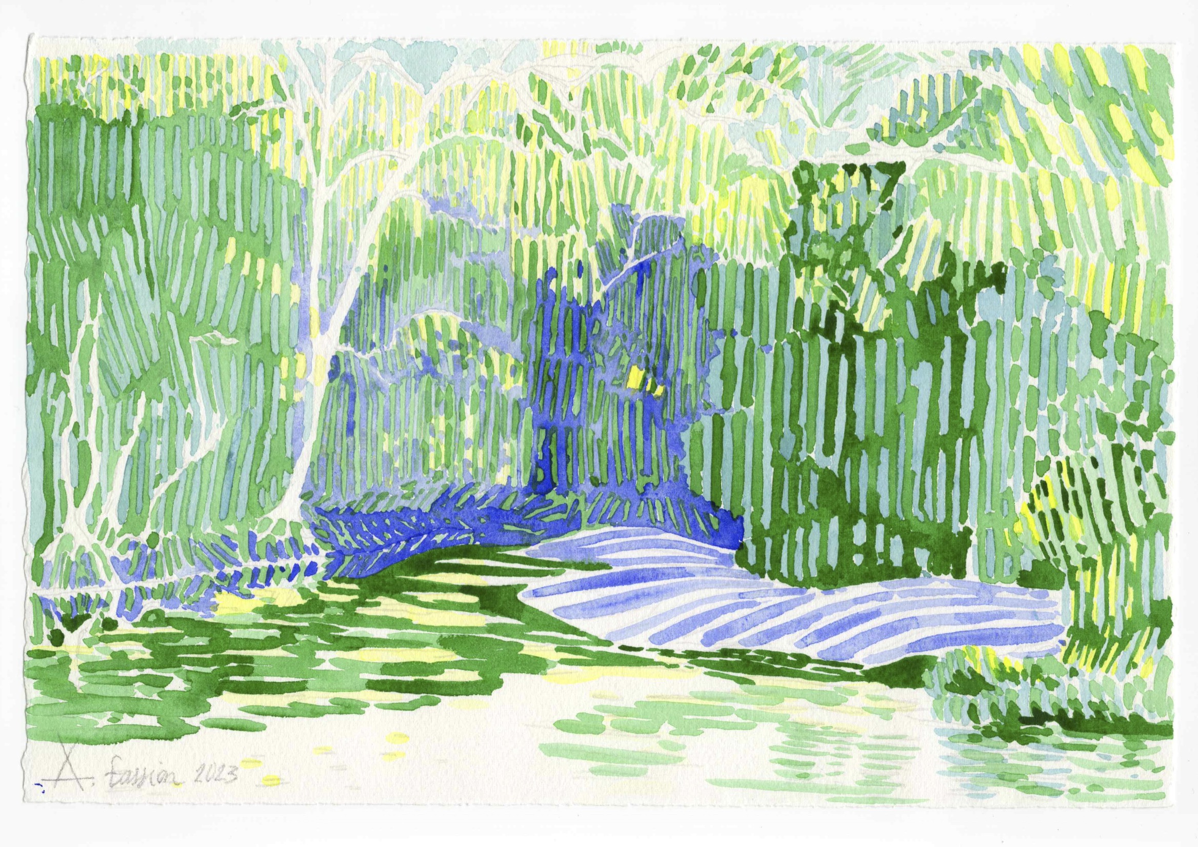 Dessins au fusain et aux pastels secs des bords de la Charente et d’une partie du patrimoine roman du nord d’Angoulême (Saint-Amant de Boixe, Vindelle, etc.) ; dessins de plantes sauvages et familières. Je dessine exclusivement sur le motif, "sur le vif".